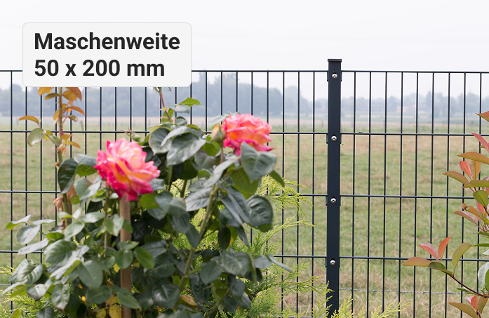 Technische Daten:Gitterhöhen: 805 mm, 1005 mm, 1205 mmGitterlänge: 2010Maschenweite: 50/200Drahtstärke: 6/5/6 mm  (waagerecht/senkrecht/waagerecht) inkl. Pfosten TYP VAPÜberstände: keineFarben: RAL 7016 (anthrazitgrau), RAL6005 (moosgrün) Leicht, preiswert und vielseitig einsetzbar – das sind die Merkmale des Doppelstab-Gitterzauns PICO. PICO besteht aus massiven miteinander verschweißten Stahldrähten und eignet sich besonders gut für abschüssiges Gelände, Abtrennungen in einzelne Bereiche und kurze Doppelstabzäune. PICO wird mit modernster Schweißtechnik gefertigt. Feuerverzinkung und hochwertige Pulverbeschichtung garantieren eine außerordentlich lange Lebensdauer.Der Doppelstab-Gitterzaun PICO weist Drahtstärke 6/5/6 mm auf und ist in den Farben moosgrün (RAL 6005) und anthrazit (RAL 7016) erhältlich. Als Höhen stehen 0.8 m, 1.0 m und 1.2 m zur Verfügung. Darüber hinaus sind auch passende einflügelige Gartentore erhältlich. Selbstverständlich sind die Zäune der Serie Zaunpake KOMPLETT einfach zu montieren.>> Montageanleitung