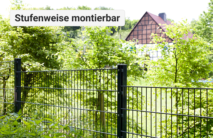 Alle Doppelstabmattenzäune können je nach Grundstück in der Höhe angepasst werden.