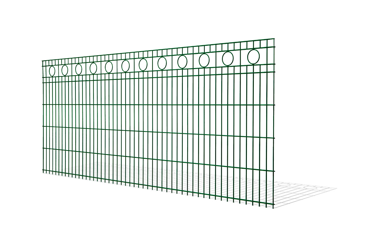 Die Doppelstabgittermatte ROM bietet kreisförmige Zierelemente und eine Drahtstärke von 6 mm waagerecht und 6 mm senkrecht. Sie können den Schmuckzaun ROM in den Höhen 830 mm, 1030 mm und 1230 mm ab Lager erhalten, andere Höhen können Sie auf Anfrage bestellen. Die Doppelstabmatte hat eine Länge von 2510 mm.