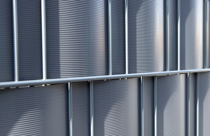 Durch das Doppelstabgitter können Sichtschutzstreifen einfach durchgezogen werden. Dadurch entsteht ein kompletter Sichtschutz.