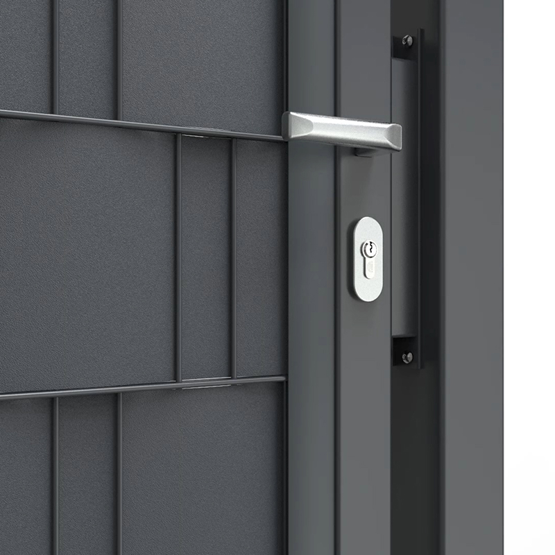 Schloss und Klinke sind natürlich dabei. Je nach Serie ist auch der Profilzylinder schon enthalten oder kann ergänzt werden. Damit lässt sich das Tor dann sicher abschließen.
