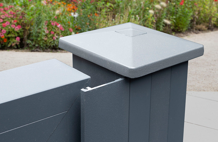 | Tore für VIDUAL Steckzäune | Serie VIDUAL | Aluminium / WPC („Wood Plastic Composite“ - Holz-Kunststoff-Verbundwerkstoff) | 1040 & 1330 mm | 1000 - 1800 mm | Anthrazitgrau RAL 7016, Antique Oak, Dark Oak, Fenstergrau, Grey Oak, Light Oak, White Oak | Durch modernes Design etwas höherer Preis |
