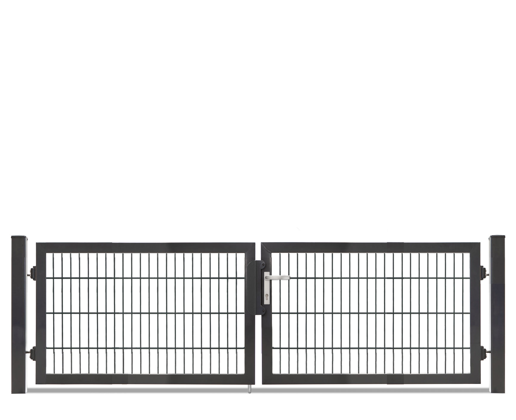 Die zweiflügelige Variante ist in sieben Breiten und sieben Höhen erhältlich, als zweiflügelige Toranlage bieten sich sowohl symmetrische als auch asymmetrische Kombinationsmöglichkeiten. Das Tor ist feuerverzinkt und pulverbeschichtet in RAL 7016 ab Lager verfügbar.