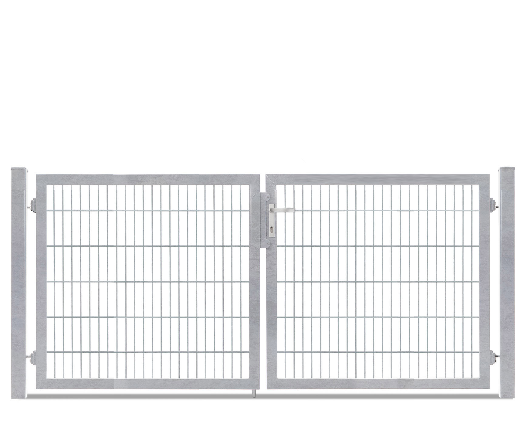 Die zweiflügelige Variante ist in sieben Breiten und sieben Höhen erhältlich, als zweiflügelige Toranlage bieten sich sowohl symmetrische als auch asymmetrische Kombinationsmöglichkeiten. Das Tor ist feuerverzinkt und pulverbeschichtet in RAL 7016 ab Lager verfügbar.