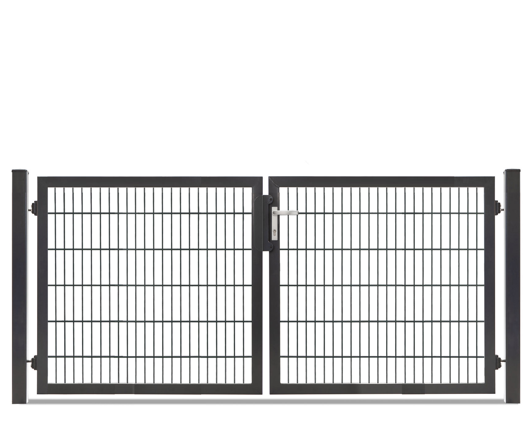 Die zweiflügelige Variante ist in sieben Breiten und sieben Höhen erhältlich, als zweiflügelige Toranlage bieten sich sowohl symmetrische als auch asymmetrische Kombinationsmöglichkeiten. Das Tor ist feuerverzinkt und pulverbeschichtet in RAL 7016 ab Lager verfügbar.