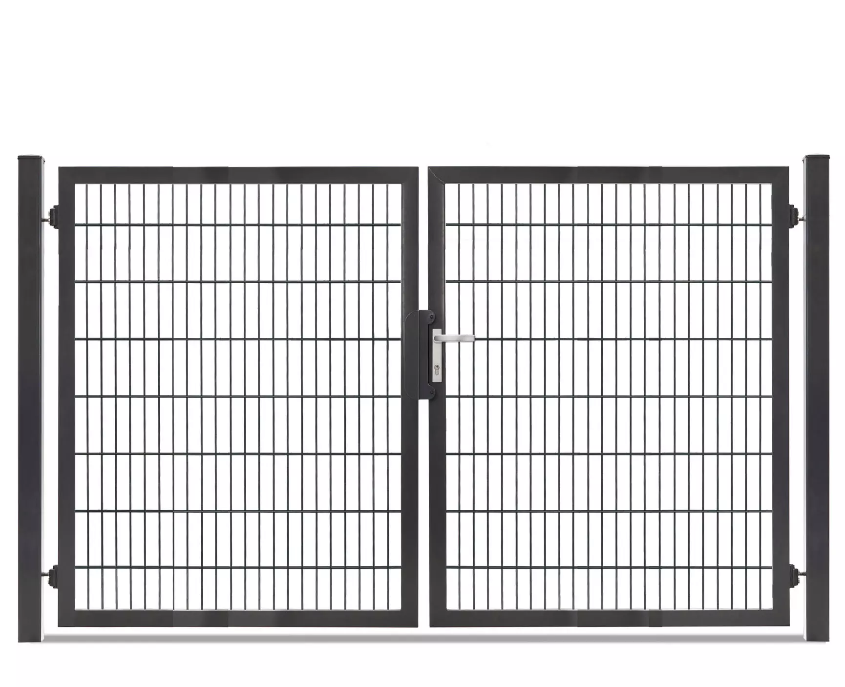 Die zweiflügelige Variante ist in sieben Breiten und sieben Höhen erhältlich, als zweiflügelige Toranlage bieten sich sowohl symmetrische als auch asymmetrische Kombinationsmöglichkeiten. Das Tor ist feuerverzinkt und pulverbeschichtet in RAL 7016 ab Lager verfügbar.