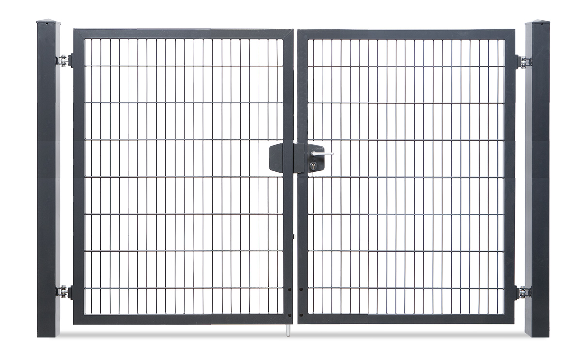 Das zweiflügelige Einfahrtstor VARIO trend lässt Sie die Öffnungsrichtung nach DIN links und rechts durch entsprechende Pfostenmontage bestimmen. Das variable Einfahrtstor kommt als Komplettpaket mit Doppelstabfüllung von 8/6/8mm, einem Rahmen von 60/40 mm und den zugehörigen Torpfosten je nach Höhe des Tores von 80/80 mm oder 100/100 mm zu Ihnen nach Hause. Aus zahlreichen Torhöhen und Torbreiten können Sie das für Sie passende Tor auswählen.
