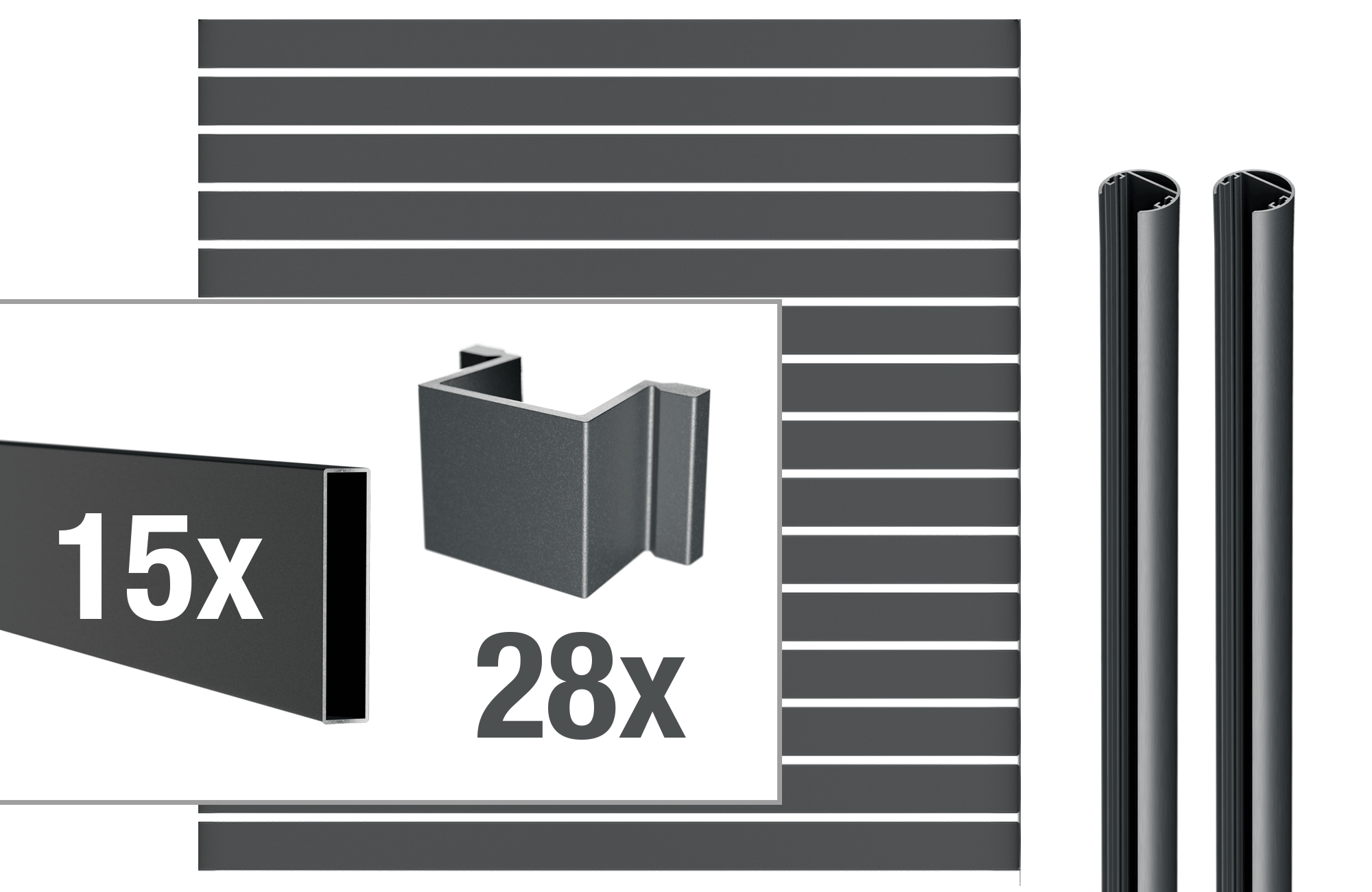 Das Aluminium-Rechteckprofil der VIDUAL Steckzaunserie bietet eine hochwertige und zeitlose Optik und zeichnet sich durch seine variablen Spaltenhöhen von 10 oder 18 mm aus, die durch das Einsetzen entsprechender Distanzstücke erreicht werden. Das Profil ist in der Größe 100 x 20 mm erhältlich und wird in RAL 7016 Anthrazitgrau Feinstruktur pulverbeschichtet geliefert.
