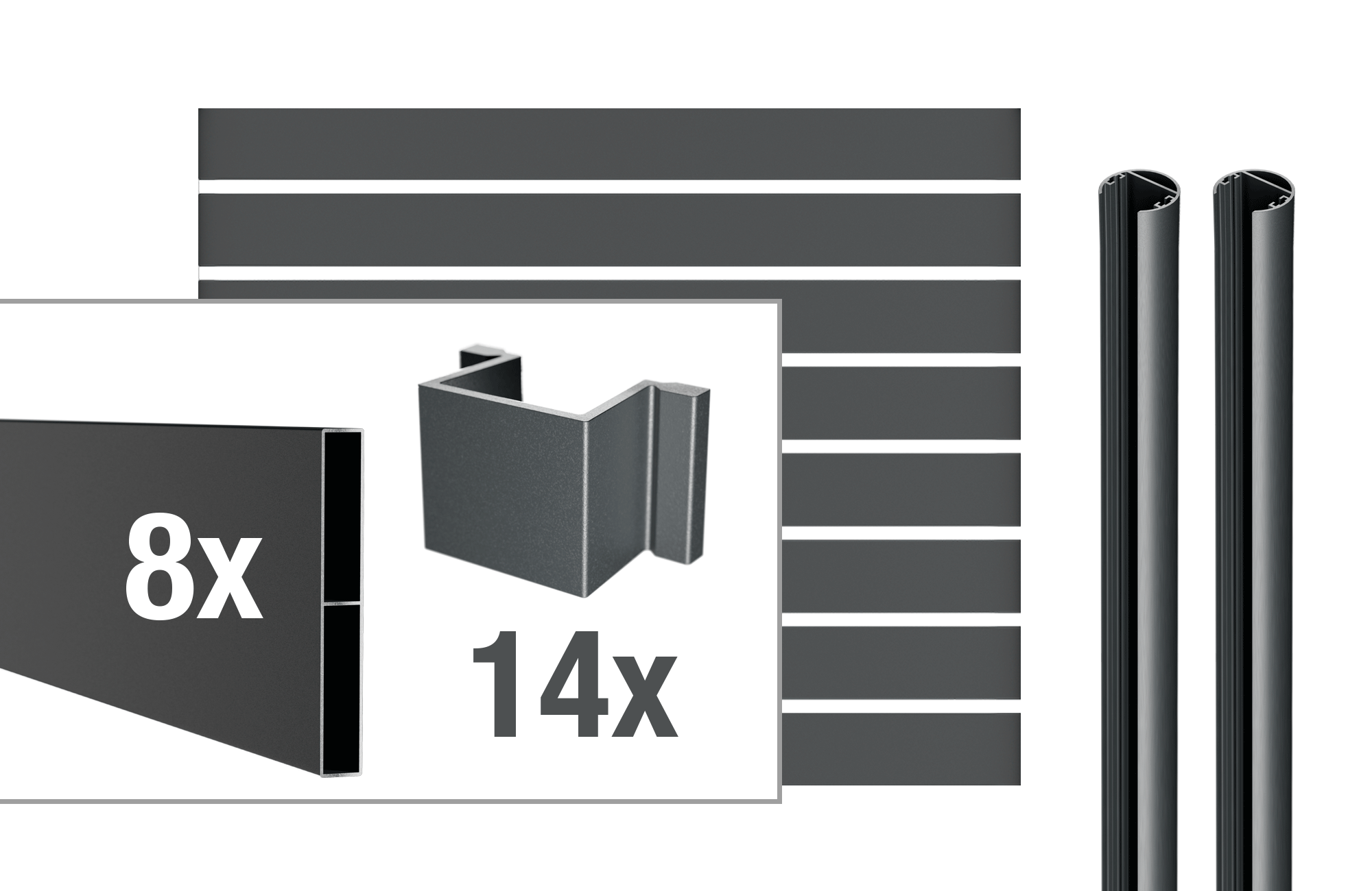 Das Aluminium-Rechteckprofil der VIDUAL Steckzaunserie bietet eine hochwertige und zeitlose Optik und zeichnet sich durch seine variablen Spaltenhöhen von 10 oder 28 mm aus, die durch das Einsetzen entsprechender Distanzstücke erreicht werden. Das Profil ist in der Größe 150 x 20 mm erhältlich und wird in RAL 7016 Anthrazitgrau Feinstruktur pulverbeschichtet geliefert.