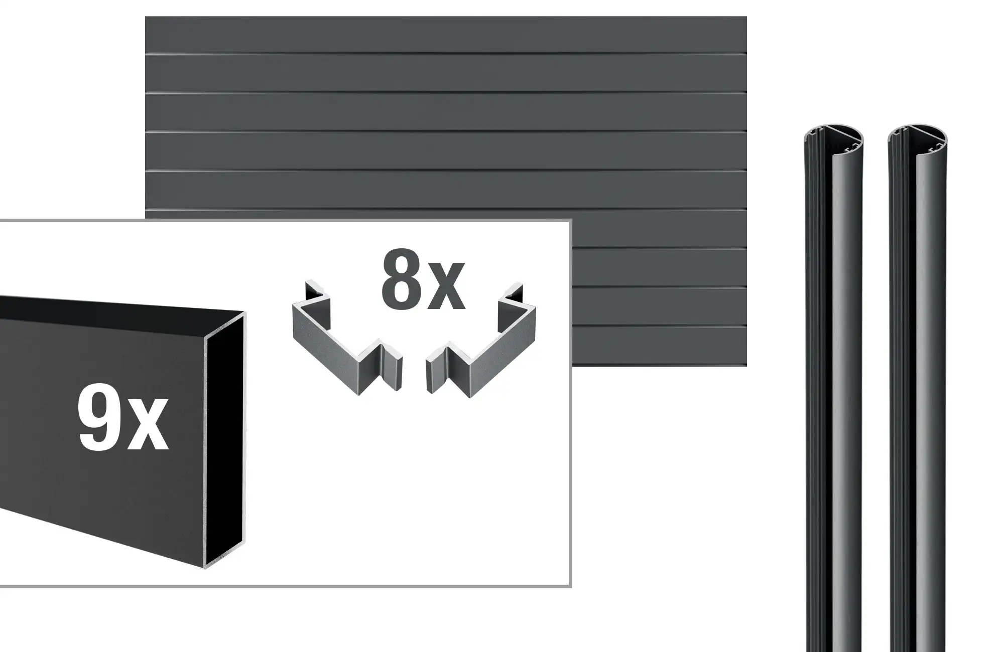 Alu-Steckzaunset inkl. Distanzstücken und Profiladapter zum Einschieben in den Pfosten (Pfosten separat erhältlich)