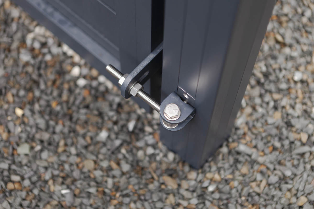 an den Pfosten mit Pfostenstärke 90 x 90 mm bis Torflügelbreite 1250 mm, ab Torflügelbreite 1540 mm Pfostenstärke 120 x 120 mm