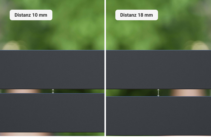Wie offen ein Zaun wirkt, entscheidet sich im Detail. Unsere Aluminiumsteckzäune bieten unterschiedliche Spaltenvarianten, mit denen sich die Wirkung gezielt steuern lässt, von blickdicht bis aufgelockert. Für einen Garten, in dem Sie sich wohlfühlen.