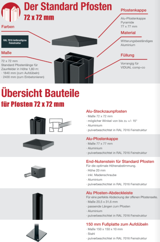- Farbe: RAL 7016 Anthrazitgrau Feinstruktur